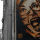 Street artist: Italian street artist BR1 (1984) A man with his murales tell us about the world of Muslim women. Turin outskirts 2011