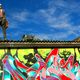 The traditional world of Flamenco meets the grey modern world of underground Architecture 'Entre dos aguas. Entre dos Universos' is a huge mural created by street artists Okuda and Rosh333 to pay a tribute to Spanish flamenco guitarist Francisco Sánchez Gómez, known as Paco de Lucía. The two artists, in collaboration with architect Antonyo Marest and under the supervision of Madrid Street Art Project, were responsible for turning the new Estación Paco de Lucía / Línea 9 in Madrid into the first Spanish example of urban artwork. His pop surrealism of geometric prints and multicoloured ephemeral architectures raises contradictions about existentialism, the universe, the infinite, the meaning of life, and the false freedom of capitalism. The mural helps people passing by to start conversations about the conflict between modernity and tradition.